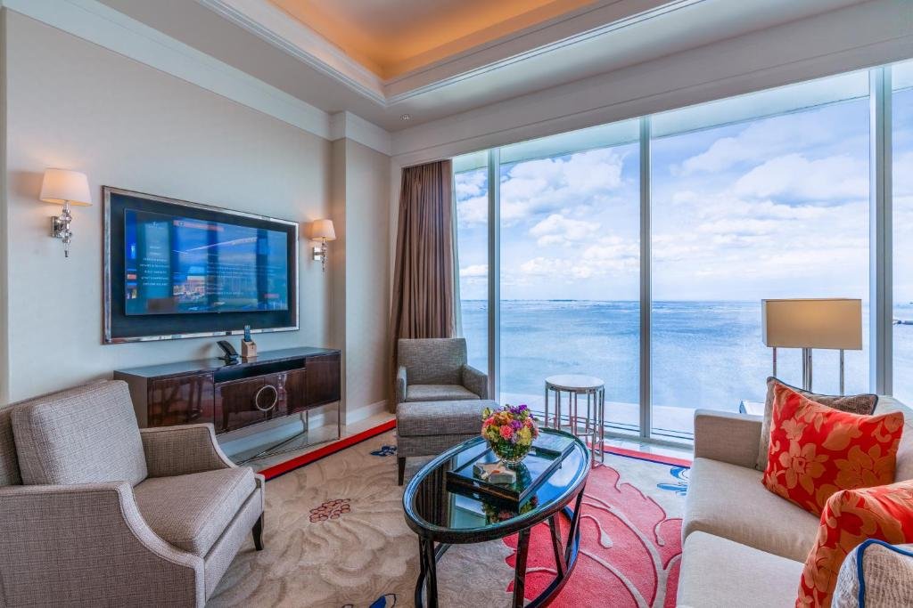 Solaire Resort — это не просто отель, а огромный развлекательный комплекс на берегу Манильского залива. Он разделен на две башни: Bay Tower и эксклюзивную Sky Tower, получившую 5 звезд Forbes. Интерьеры украшены работами современных филиппинских художников, а уровень сервиса здесь задает стандарты для всего региона.